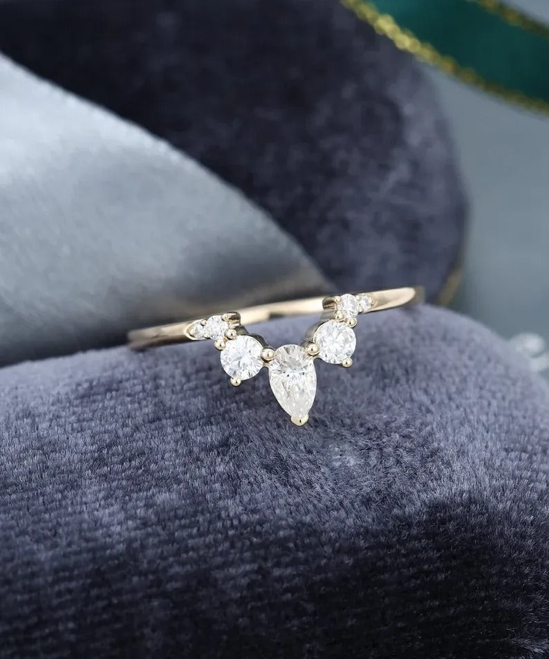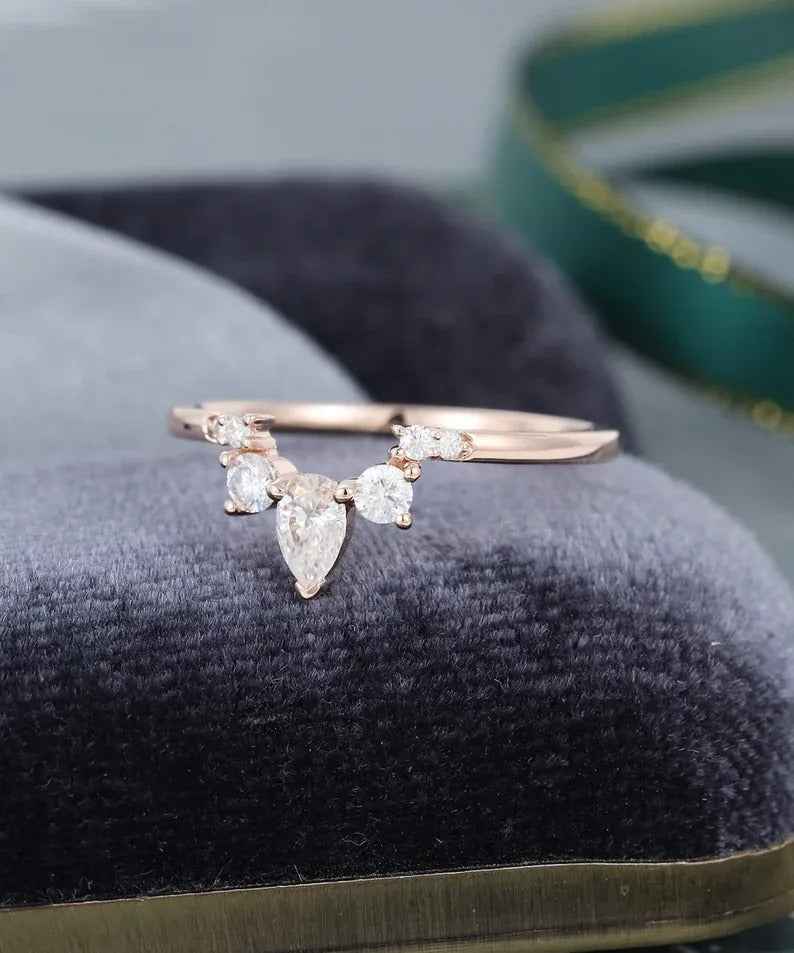 0.40 Ct Lab Grown Round & Pear Diamond 14k Rose Gold E-F Color VVS1 VS1 IGI Certified Single Band
