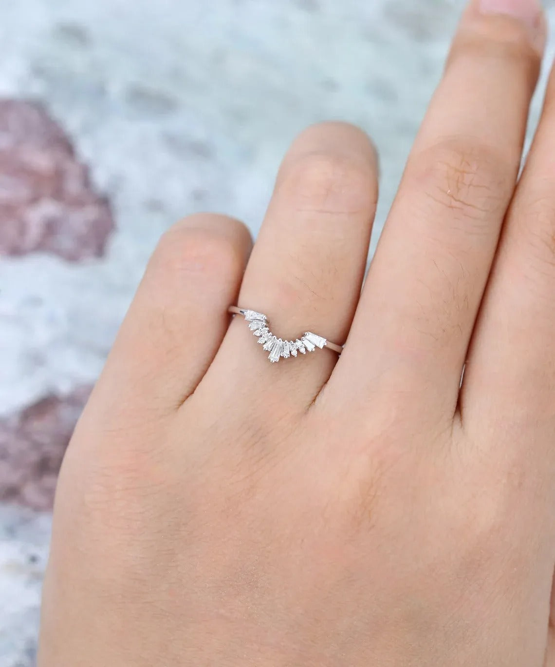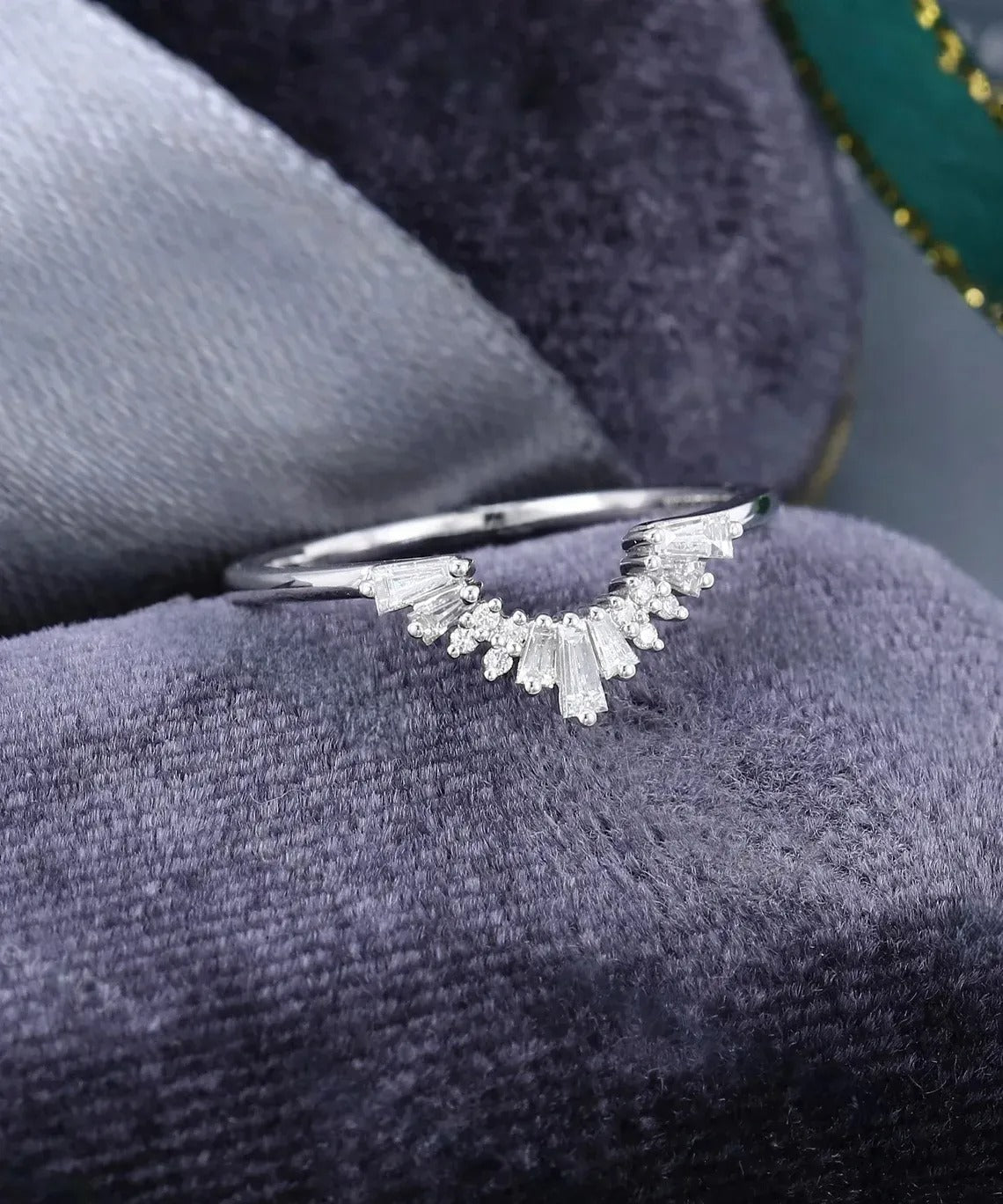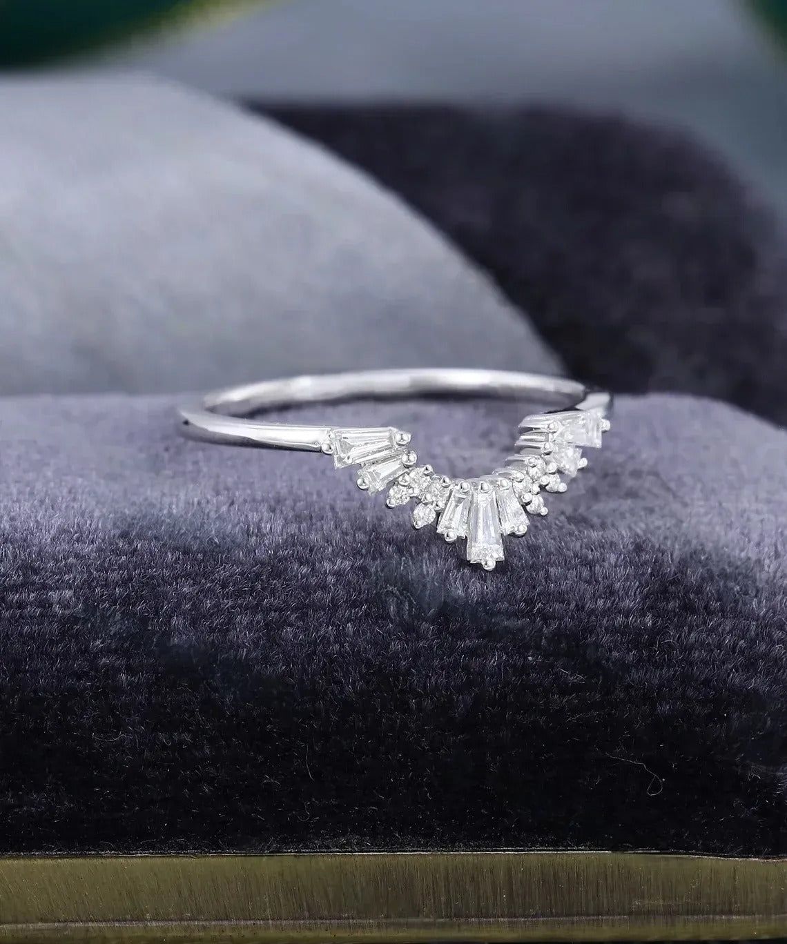 0.45 Ct Lab Grown Round & Baguette Diamond 14k White Gold E-F Color VVS1 VS1 IGI Certified Single Band