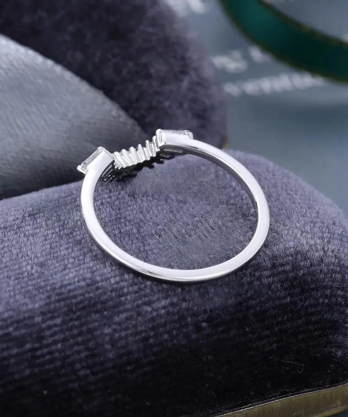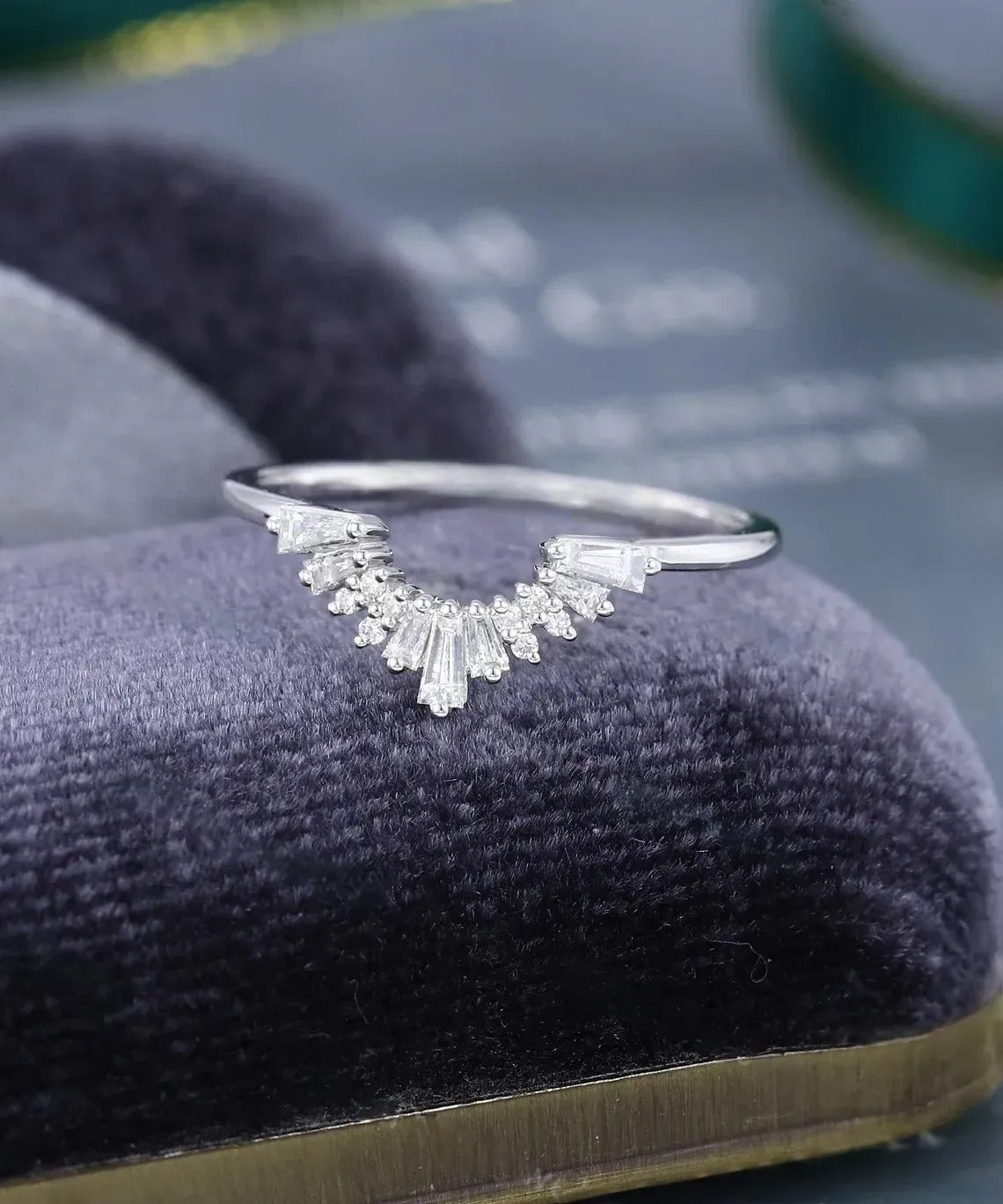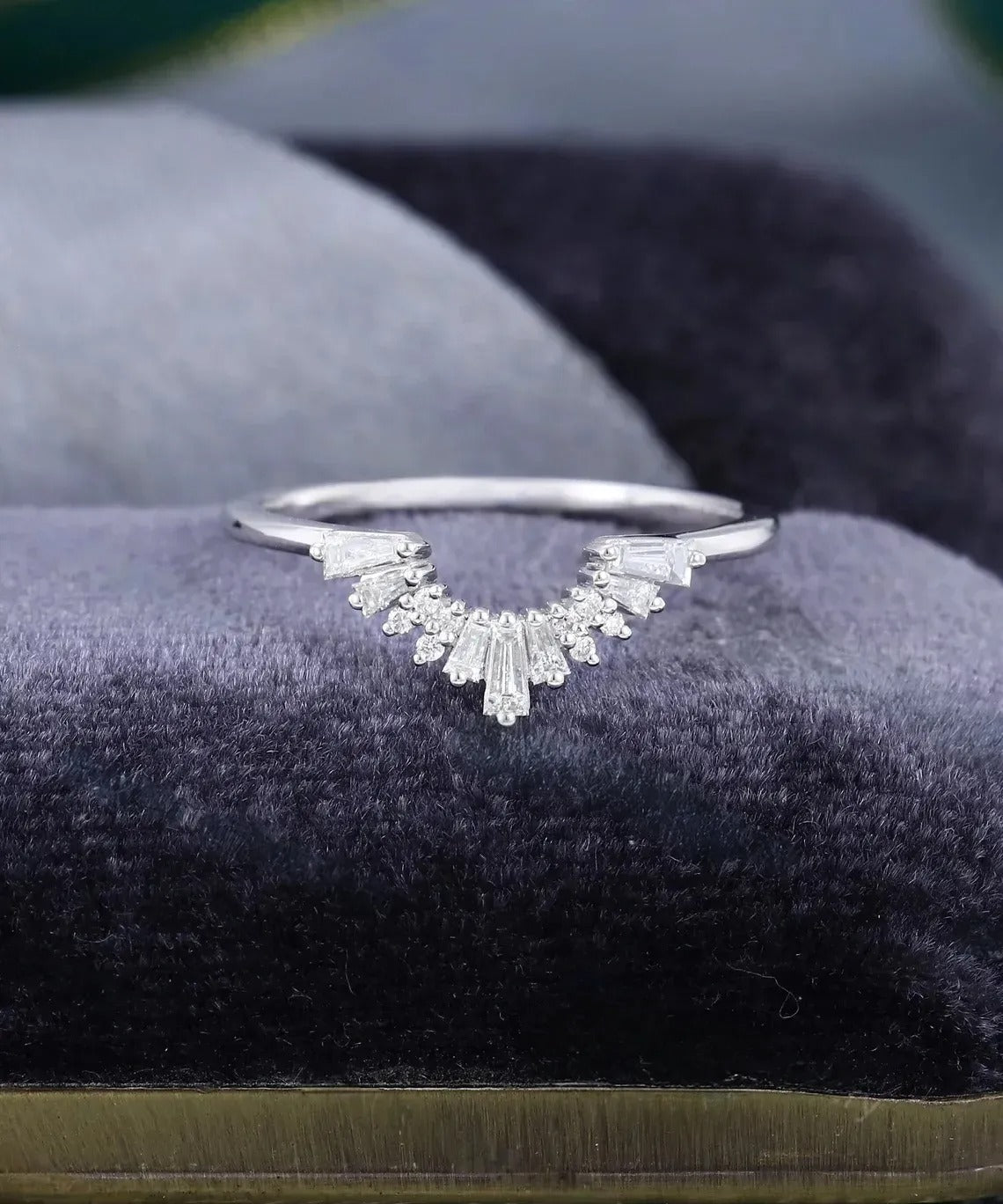 0.45 Ct Lab Grown Round & Baguette Diamond 14k White Gold E-F Color VVS1 VS1 IGI Certified Single Band