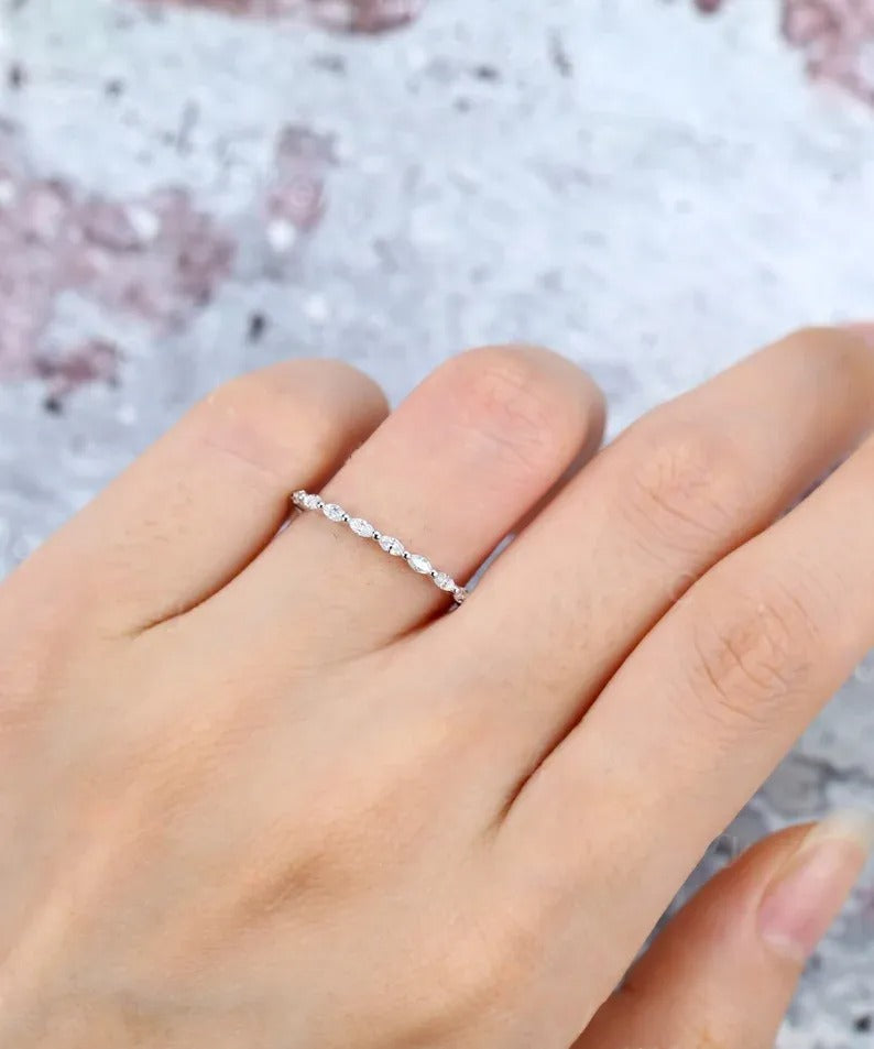 0.40 Ct Lab Grown Marquise Diamond 14k White Gold E-F Color VVS1 VS1 IGI Certified Lovely Single Band
